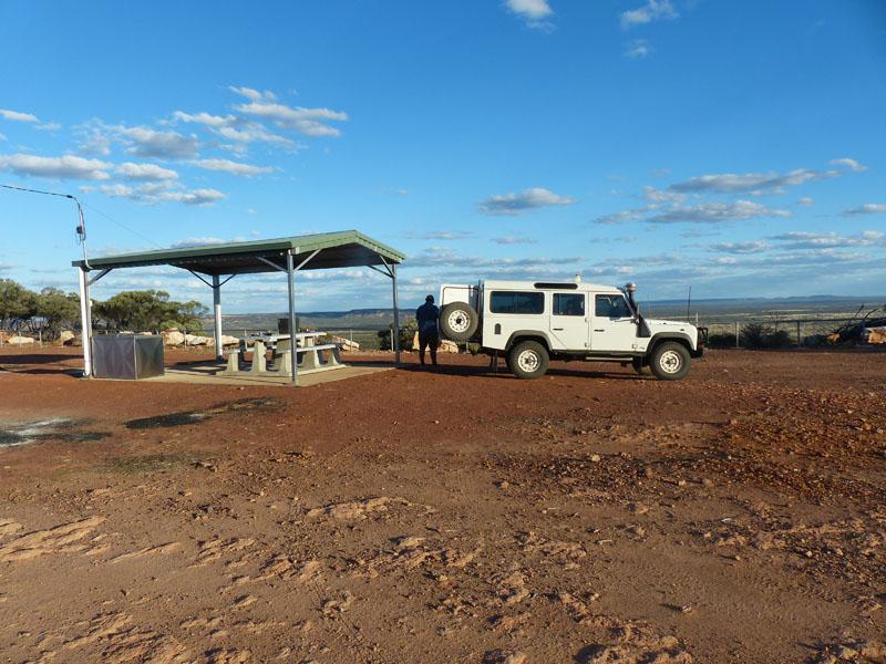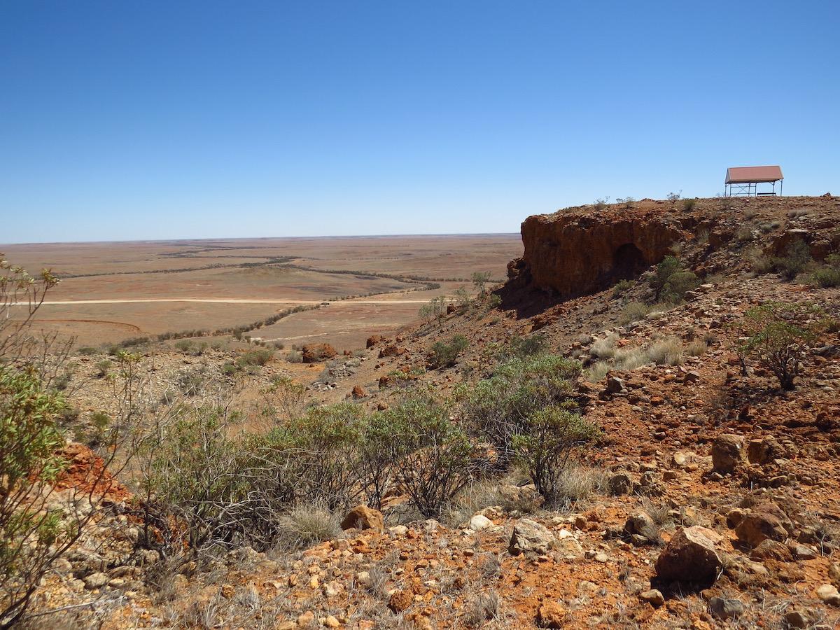 You are ontop of that fabulous lookout with a picnic table & shelter near Yaraka , I knew I'd been there but the last hint bought it back. Mt Slowcombe.