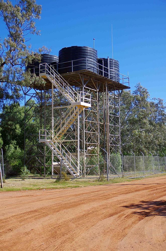 Wow Bushie :o, that's certainly some tank stand. Only someone spending someone elses money would/could build such an imposing and OH&S correct edifice. So my guess would be government, mining company or aboriginal community.