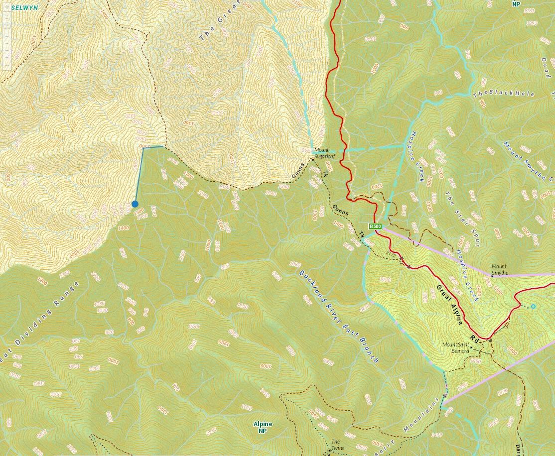 That puts it pretty much south of Feathertop , I have not been there but the contours on the map give the similar topography and elevation as the un named track so I guess the view would be similar too .