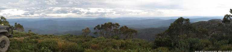 Two shots - one of the trig point/summit and a pano of the view on a very cold day with a lot of eucalyptus haze.