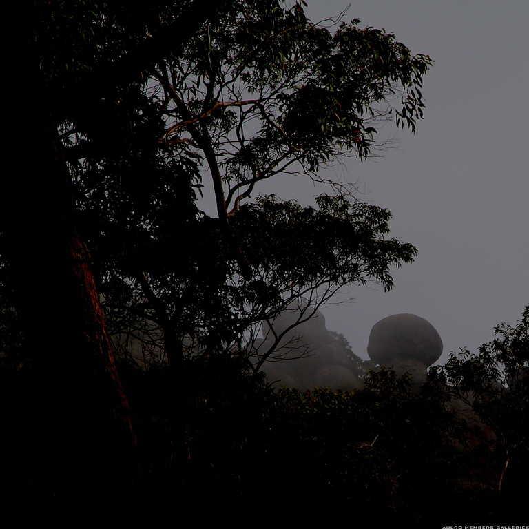 Washpool Nat Park but Im useless at cryptic clues, just have similar rocks, trees and mist at Washpool