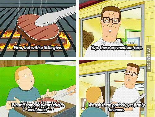 I like mine rare, medium rare is starting to get a bit burnt for my liking.