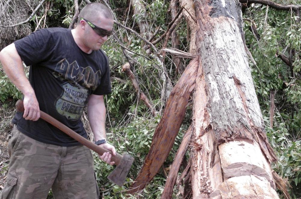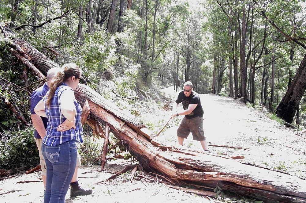 Between Western Boundary road and Plumwood tower we had to clear a tree off the track - the hard way.