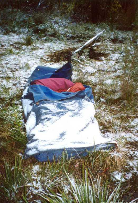 That's not camping in the snow ........................ this is camping in the snow......... or at least a light dusting of snow. Had to push it off the swag a couple of times during the night as it was getting a bit heavy on the swag - still nice and cosy inside though.![]()