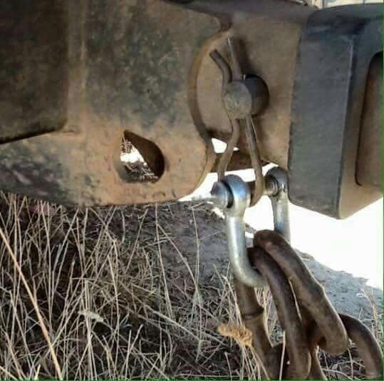 That clip is supposed to be horizontal if a safety chain is being attached.