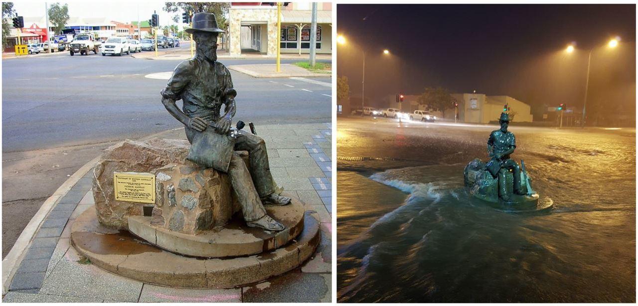 Poor old Paddy usually sits high & dry on his perch outside the town hall - but he got a bit of an unscheduled wash last night.