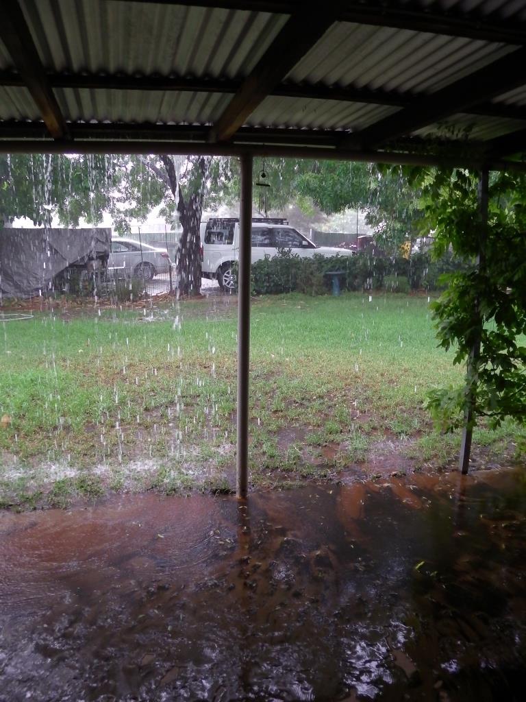 These two pics taken at our place - the gutters were struggling to handle the flow and a lot of the topsoil in from the back lawn ended up flowing through the back verandah (at least my shed stayed dry).