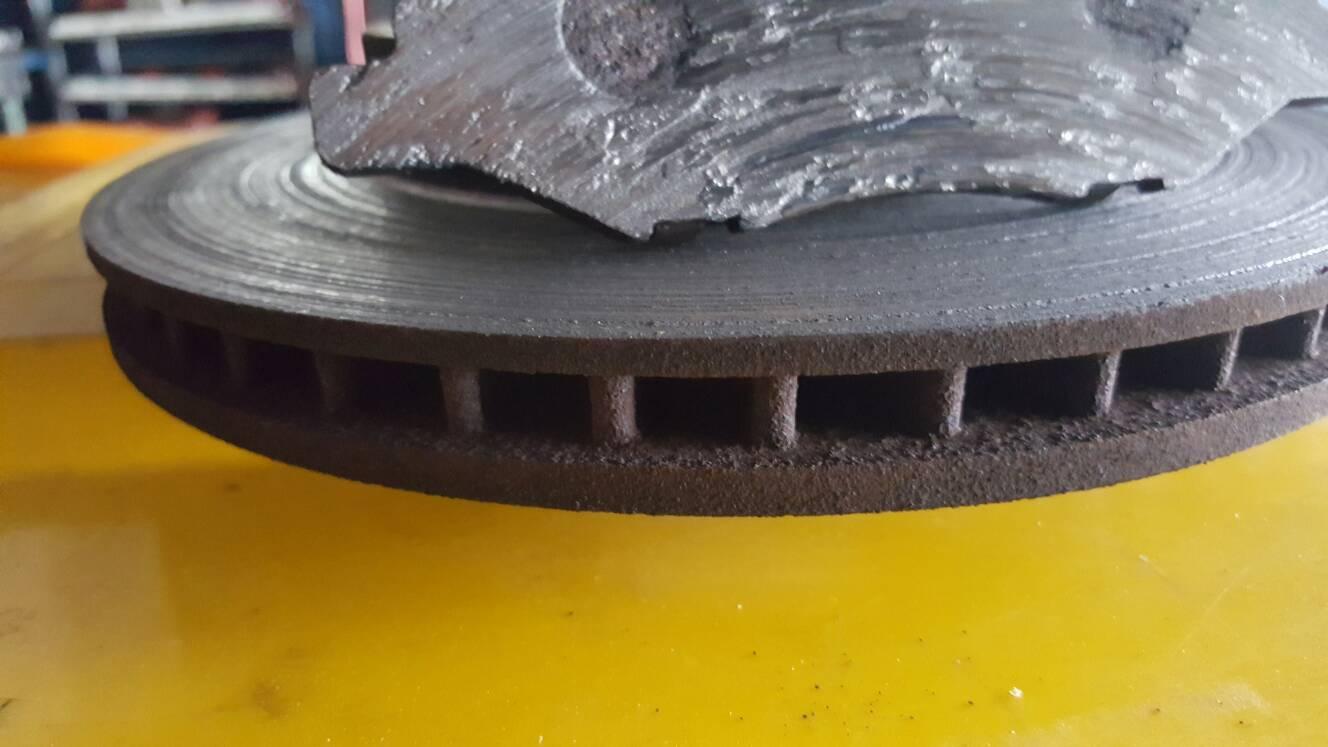 Ok, last night a young bloke brought his car in to the servo, im looking after for a few months, said to me i think i should get a service done. My brakes have been noisy for about 3 weeks and on Monday the oil light came on. Well last night was Thursday. This morning i started doing the service and checking the brakes. The r/h/f rotor was metal to metal on the outside pad. I didnt need to measure the rotor, it was visibly 2mm below minimum thickness