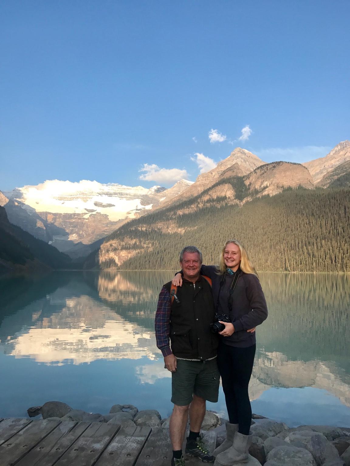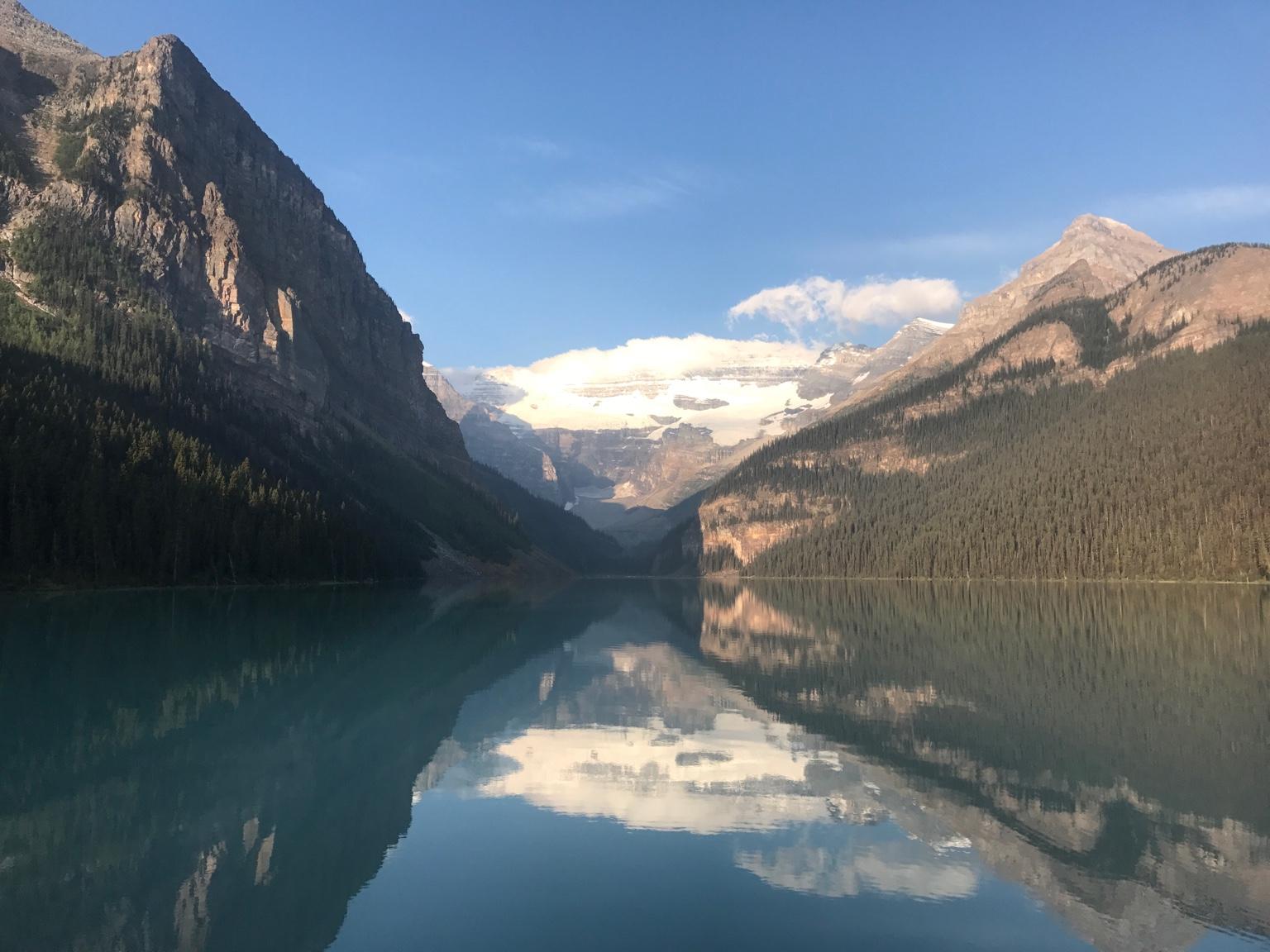 We got to Lake Louise very early. Top parking spot. Temp was 1 degree. The water was very cold. It's permanently fed by nearby glaciers.
