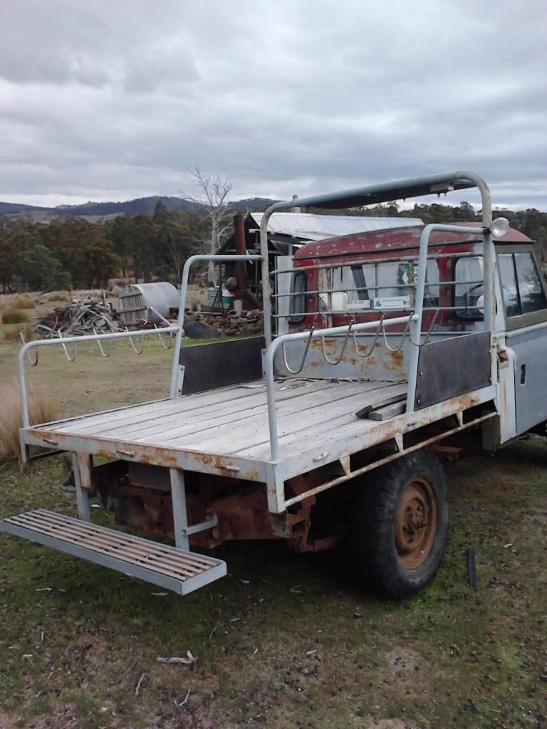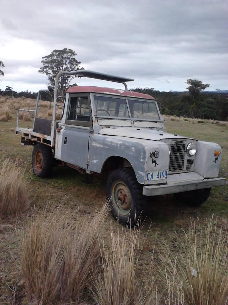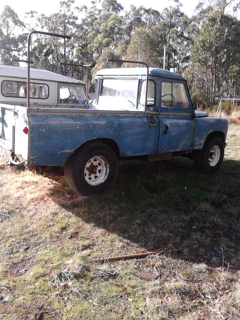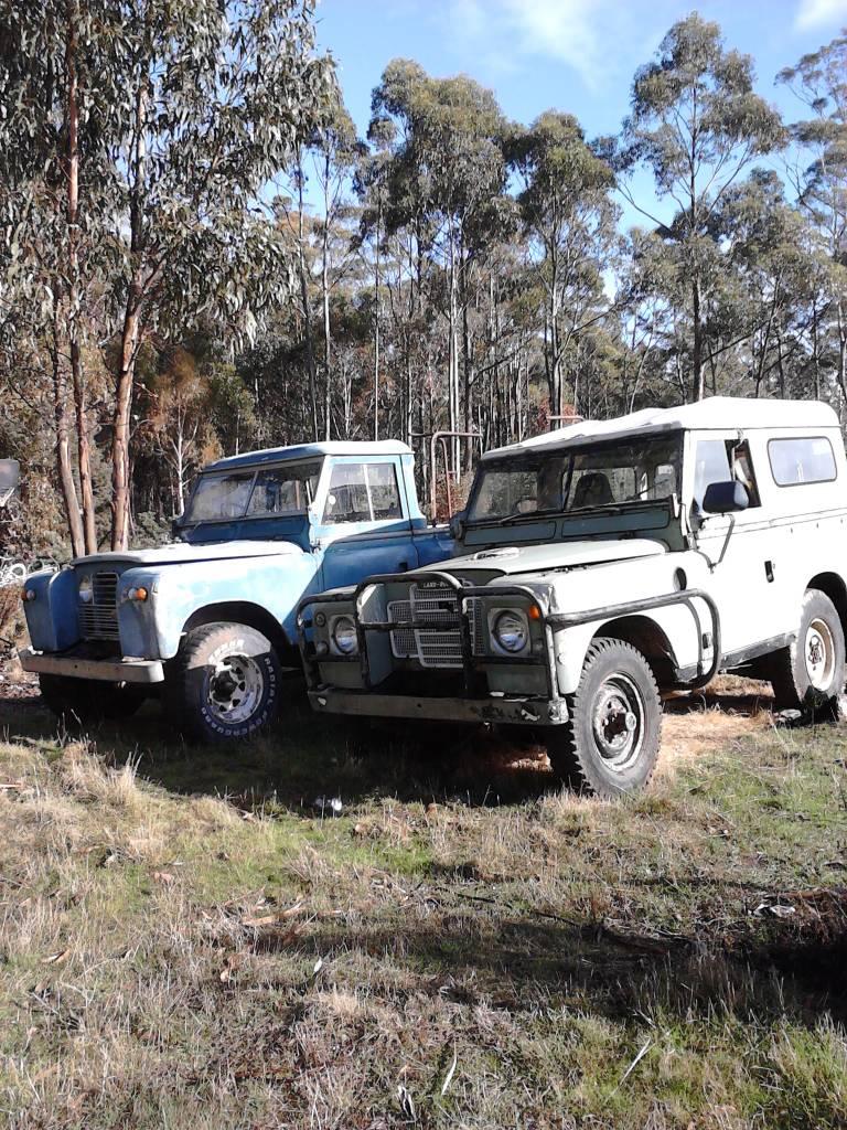 Hey all, finally got a few pics together of a couple old rovers I've got, blue series Ute is still a goer, gets some use around our place, series 3 shorty bad rusty floor, but very salvageable, Holden six in that one, red range rover was parked there still a runner, only just, more compression coming from oil filler cap than in the cylinders, lol. The 2 door range rover will make it into the work shop one day soon, shed extention first. Flat tray series 2 still in active service on our good friends stud merino farm in the southern midlands of tassie. crop protection unit, love that ol thing,.![]()