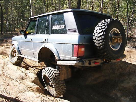 I've previously posted my Disco2, though here is what the Series 100" was doing (stripped now and rebuilt as a SPUA 109" ute). Its sitting on 38" Denman Ground Hawgs, measuring about 36" and Toyota axles. SPOA setup on the front. Reduced leaves at the front and the rear is a coil setup with Rover A frame upper links and Slunnie lowers from the 88" forward leaf mounts. The funny thing is that when the springs were not retained, I could only lift the rear by about 30cm before the springs dislocated. Retained springs gave this result. Not sure what the height is though.