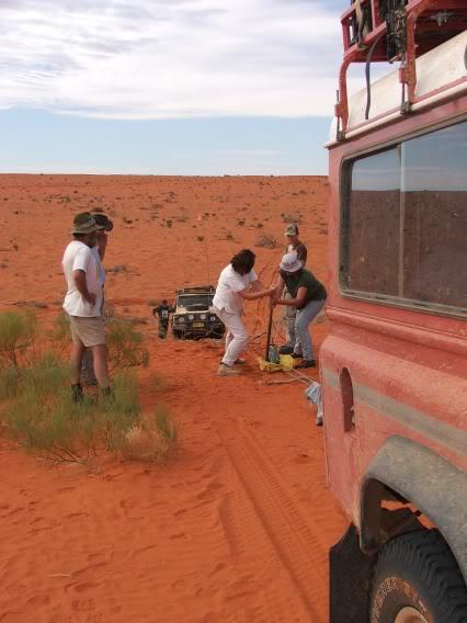 The only vehicle to have electric winch was the one with the clutch that **** itself. Funny that the battery should also happen to be flat once we fired the winch up :-) so a hand winch job of 3hrs for getting it over just the one dune was called for. Needless to say everyone got to have a go...even us girls