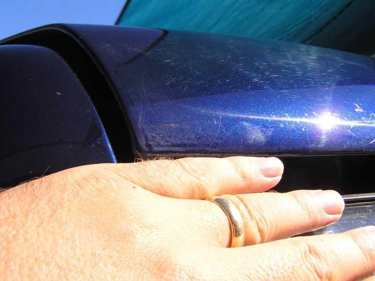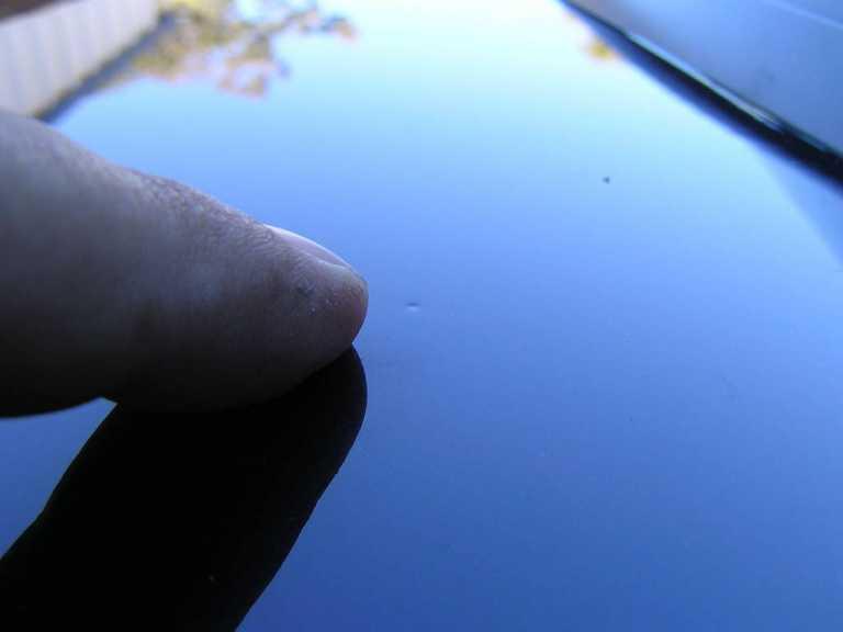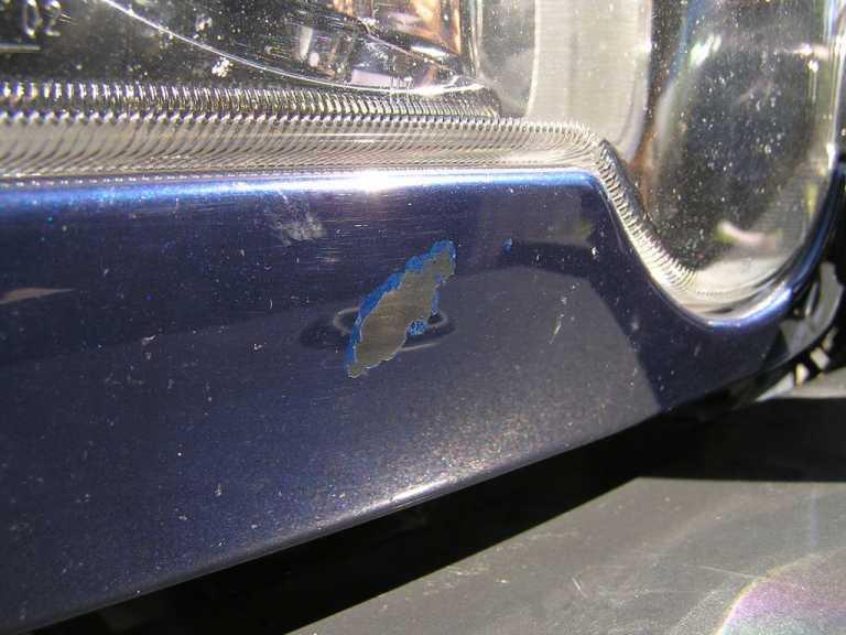 All the white dots in the top photos are overspray, You will also see that there is basically no paint on the edges of the bonnet and that there are scratches divots and dull surfaces all over it. This bonnet had been resprayed by Land Rover in March this year by Honeycombes and had been buffed by Tony Ireland in Townsville and these photos were taken around 12 hours after it was dropped off after being fixed. The chunk of paint missing under the headlight was done while it was in Townsville and they thought that they might just get away with returning it like this.
