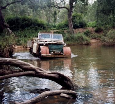 Bushie and Numpty checking the depth of Yalwal Creek from the safety of the drivers seat. Note: the official photographer (me) had already waded to the other side
