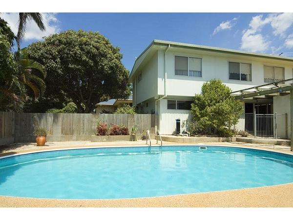 It is on the south side 5 mins from the beach and 5 mins from the ferry to Stradbroke Island.
