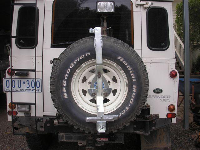 Be wary of these type of arrangements when doing tougher than normal 4x4ing,come off a drop off and the highlift can hit causing alot of grief to the door.The tyre is protected from contact by the bumper,the highlift isnt.