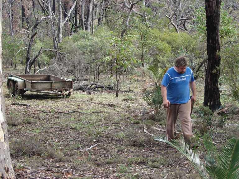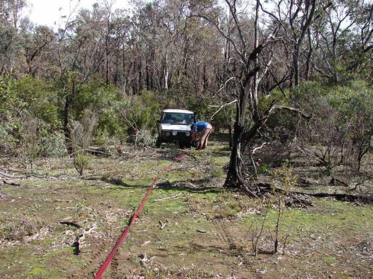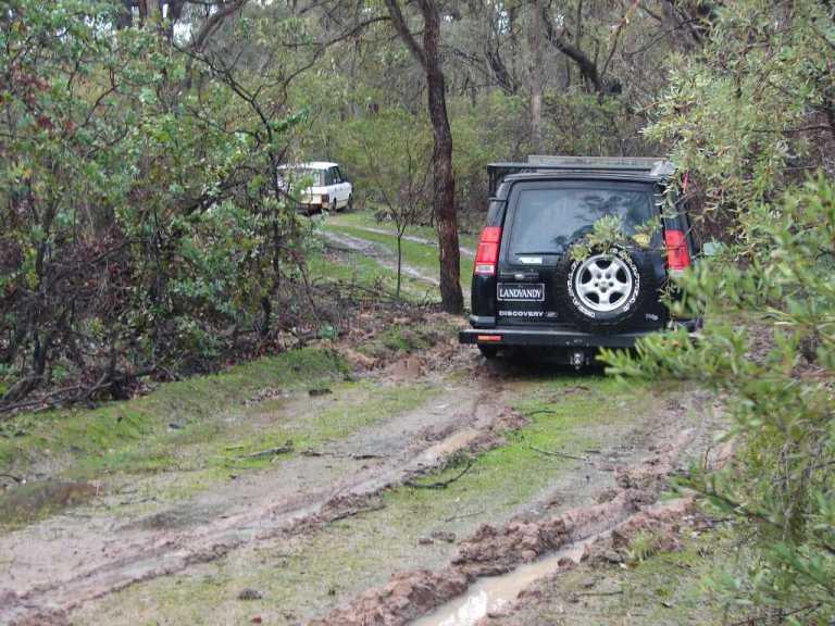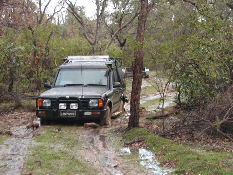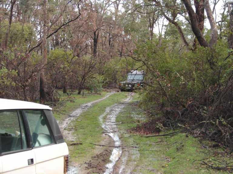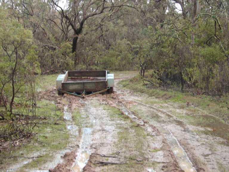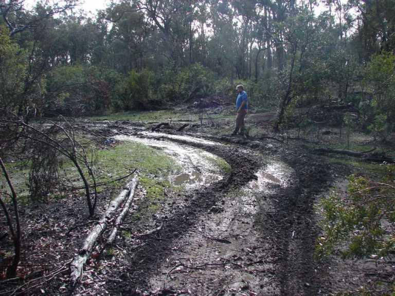 The track was pushed by a dozer during a recent fire,it starts in higher country but due to the windrows either side of the track holding water I was too scared to try a 3 point turn with the trailer on.I didnt like venturing off the track to recover but it was the only way.It is a legal CALM non fee paying firewood collection area,Collie CALM has 4 or 5 such areas,I was in the designated area at the time acording to my CALM supplied map.