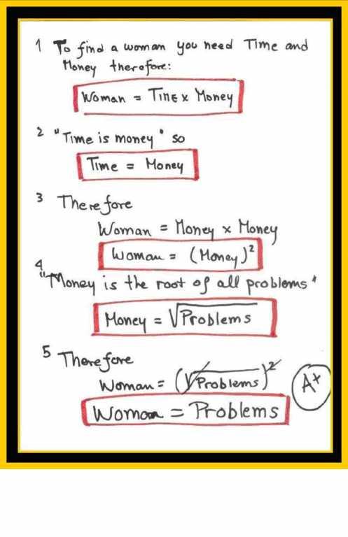 Ha ha, I remember that last one from high school, our maths teacher showed it to us, but he had the word Evil instead of Problem. It actually got us interested in maths for about 30 seconds