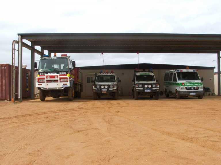 Left to Right : Isuzu 3-4 (3tonne water 4wd), Toyota Fast Attack (600 litres water 4x4), Toyota Troopy Ambulance 4x4, Mercedes Ambulance (on hire from St John).
