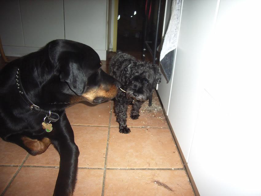 the dogs have their little cousin for a four day sleepover while her mum is playing golf.