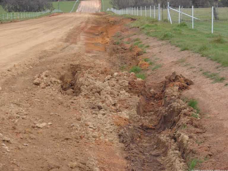 Wetspot,about the highest point on the job!!!!! Loamy gravel,hard clay both sides,its subsoil water movement from higher on the hill.The bog mark to the left(closest to the road) is over 1m deep.I didnt get bogged this time but I did in the same spot 2 weeks ago!!!