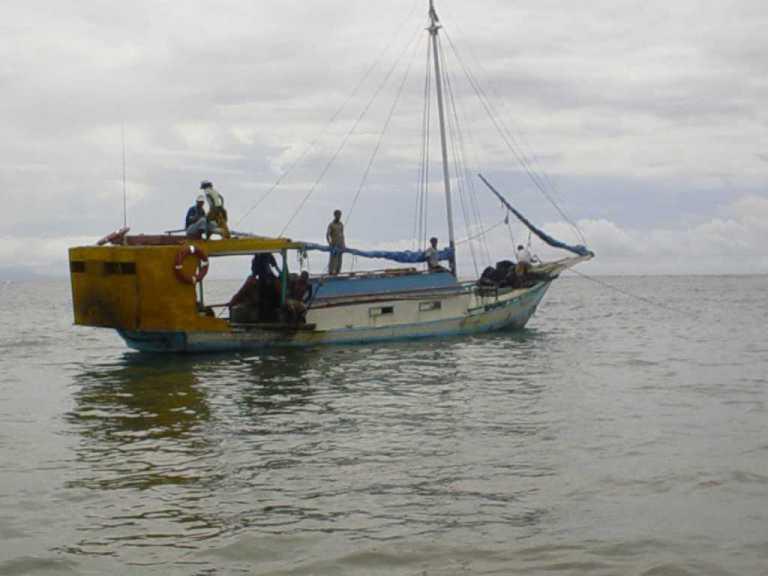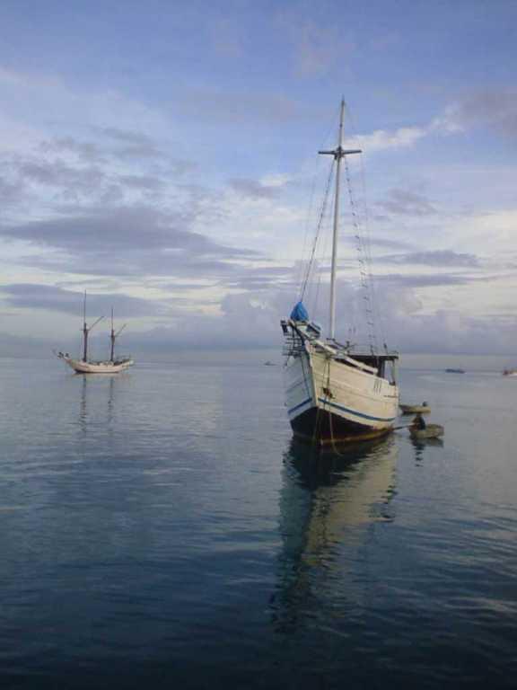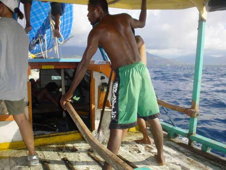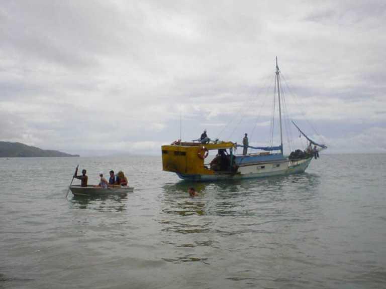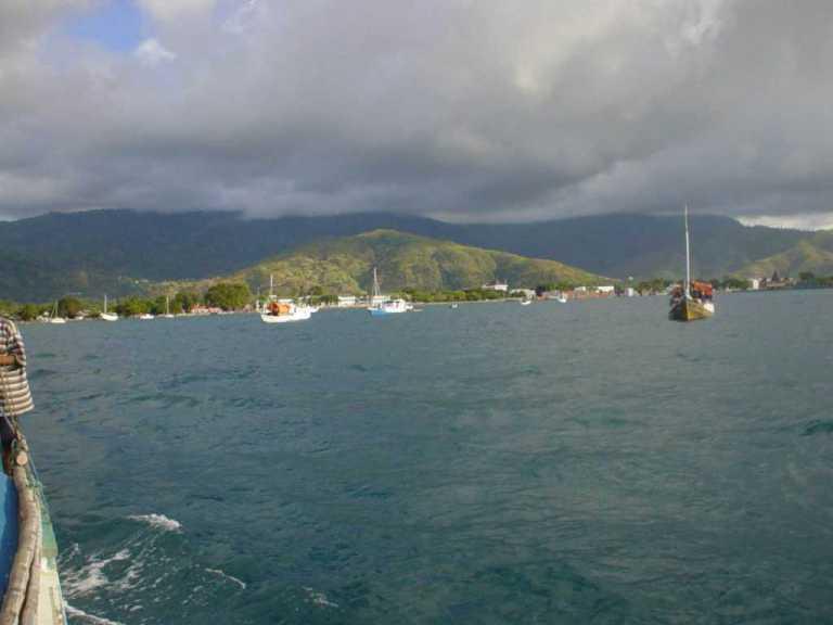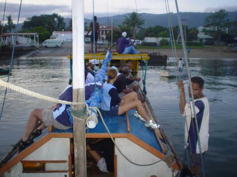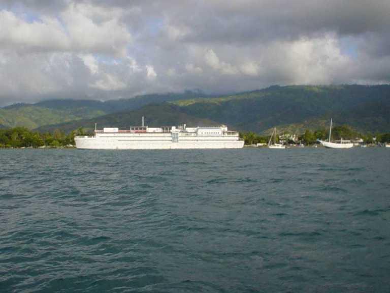 This was the boat that had been leased by the UN to sail in and provide accommodation for UN staff. 2004 when the Tsunami hit Indonesia, the tide went in and out 4 times in one day at Dili, and this boat was momentarily, and precariously, sitting on the harbour bottom!
