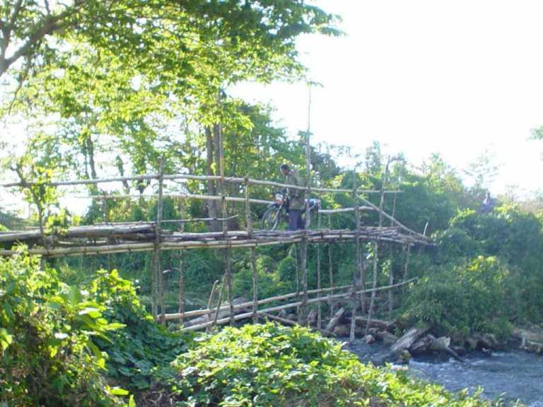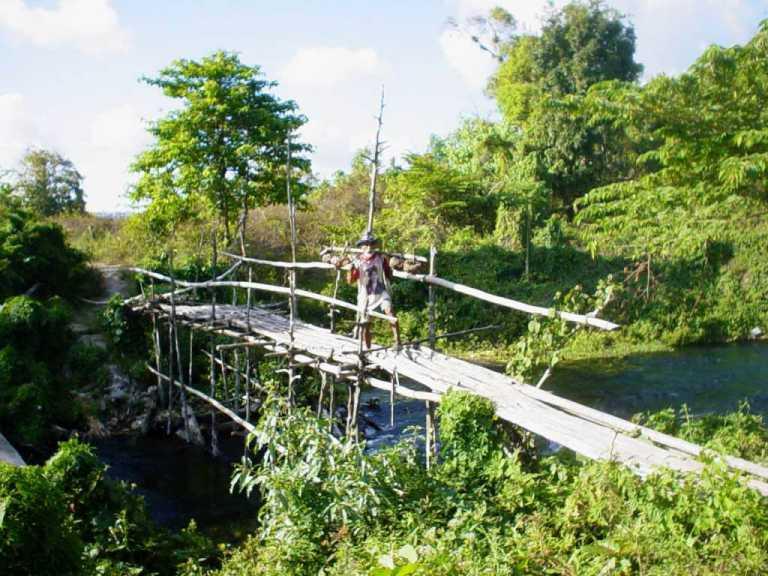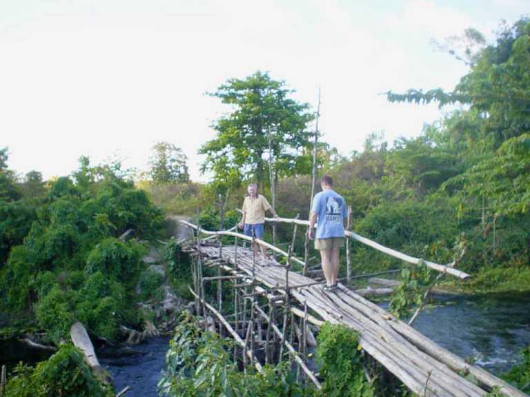 Anyway, the stream prevented our passage with the Toyotas but, the locals had fashioned their own bridge for crossing. Quite a marvel of bush engineering.