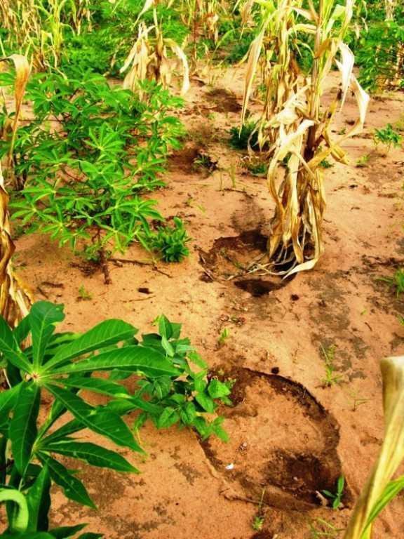 We went down to the nearby village to see what he was talking about.  They people had been there for...well...forever, and they had well developed field (machambas) in which they grew corn, manioca (cassava), and chilis.  The evidence of the elephants from the night before, even to a novice tracker like me: