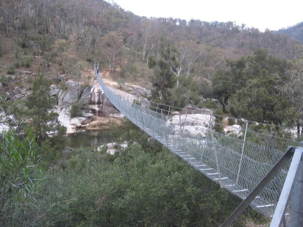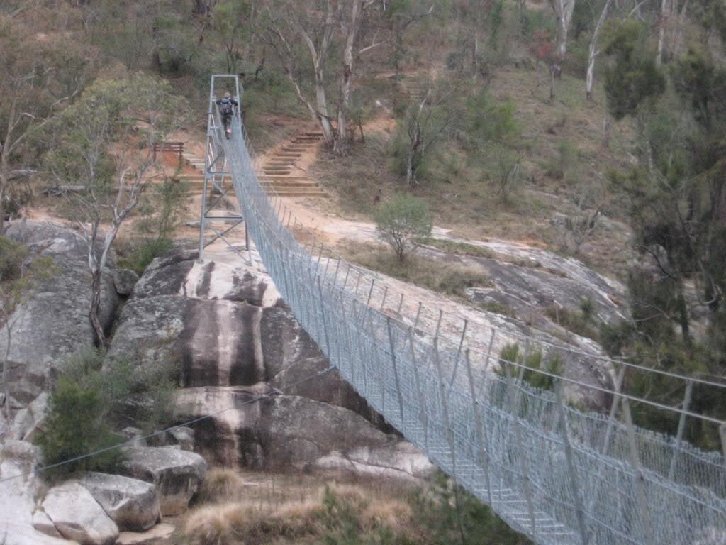 We took a team out to construct it and knocked it over in a week. If you felt it swayed a lot, consider building it, when the steel wire ropes were not contained by the tread plates and sides. We had to put 3 blokes out at a time each of them working on a side, or the treadway. They used to become affected (motion sickness) and we had to replace them frequently.
