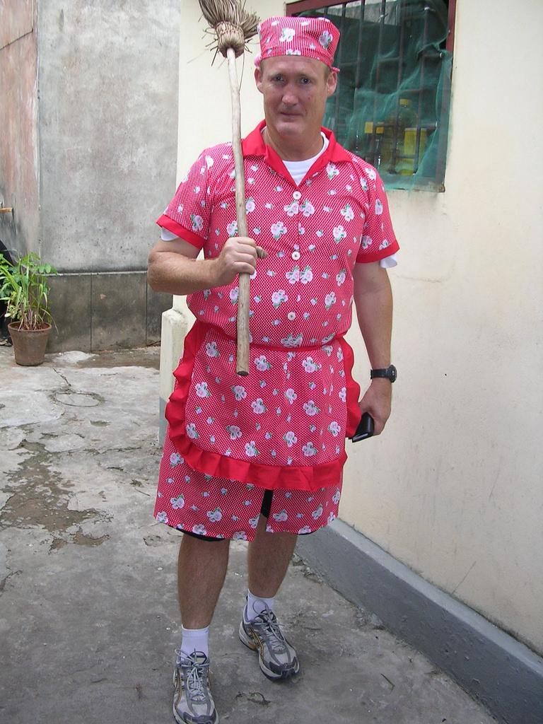 These shots were taken before we left the house for the run. It was my wife’s idea to buy me an embrigada’s outfit. My wife and I, and me and our embrigada, Emilia. I think you might be able to understand the consternation and questions that poor Emilia had!