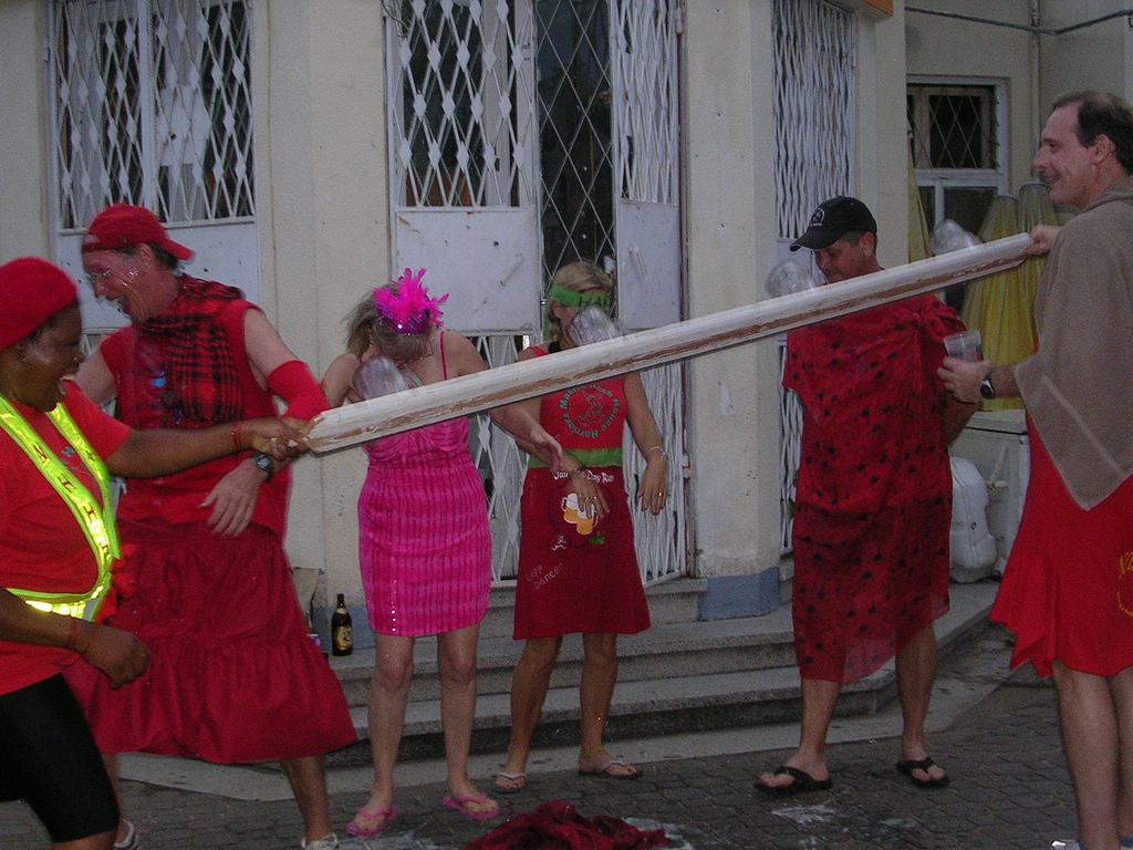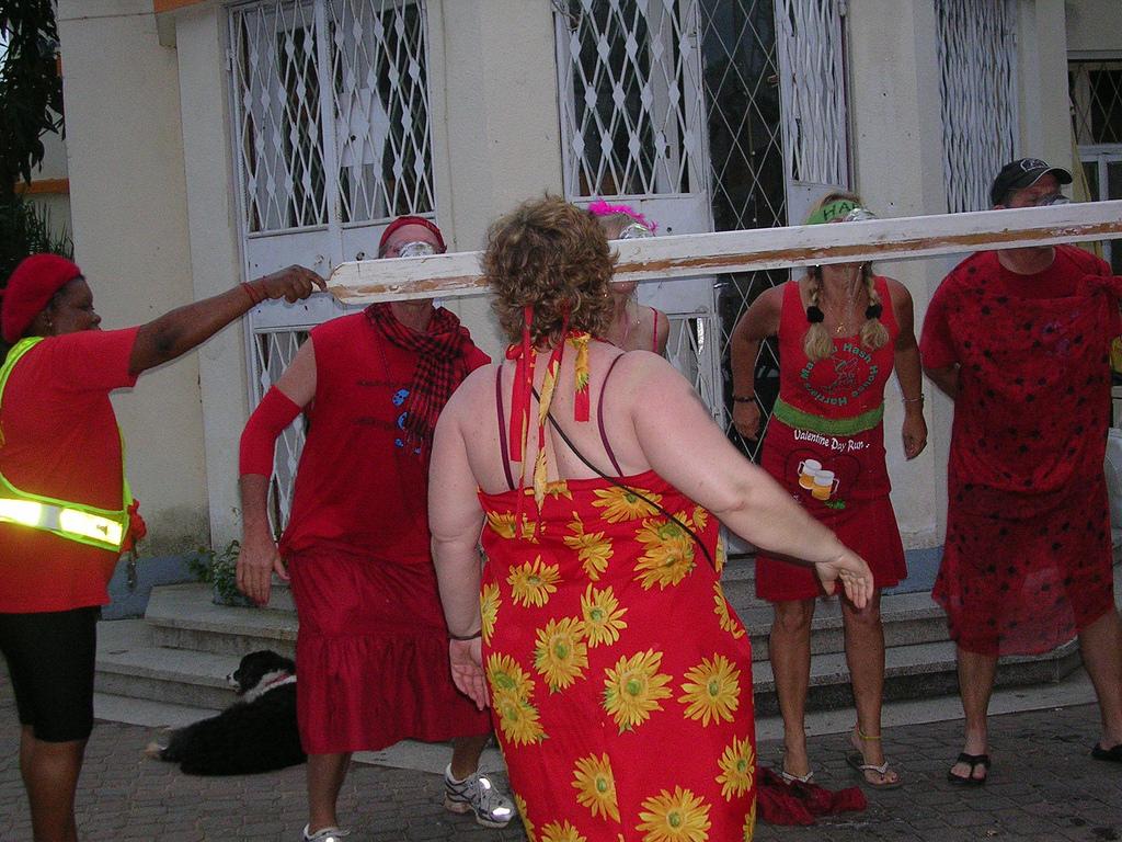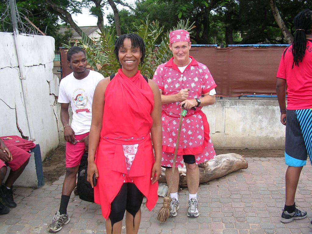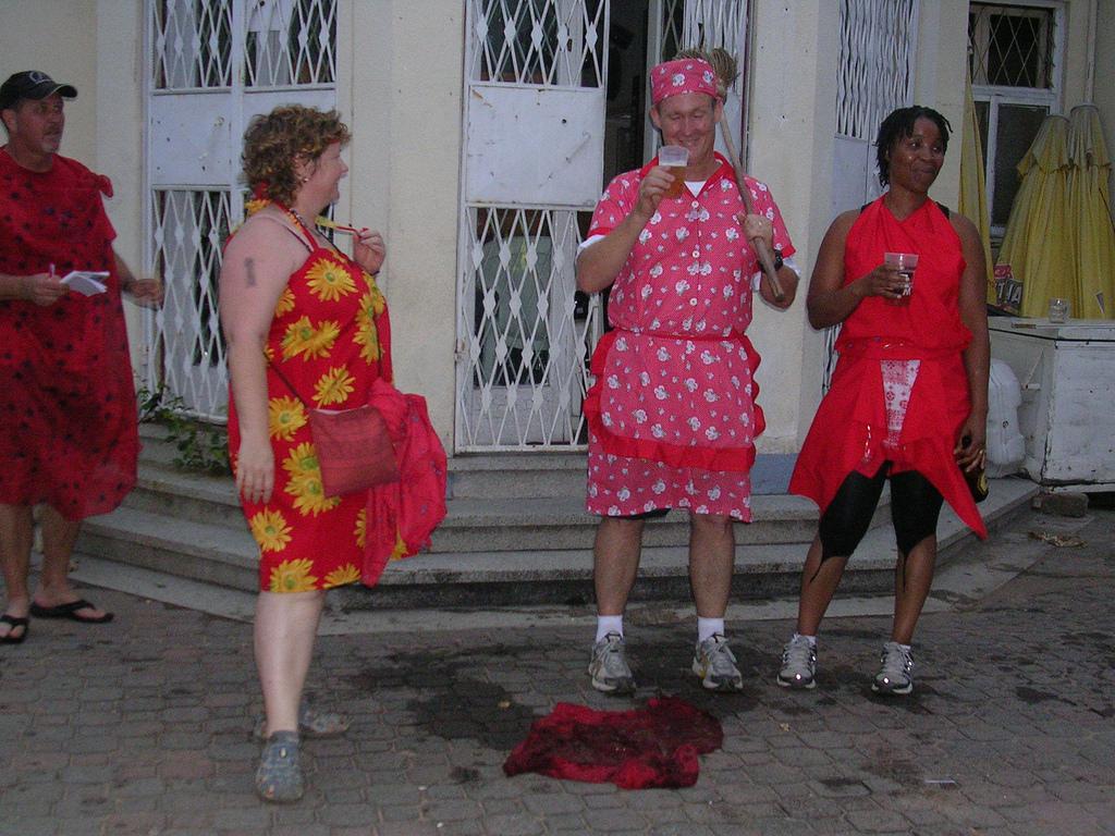 The following photos were taken on a Hash which is run every year in Maputo, called the ‘Red Dress’ run. It is run as a charity event and the money raised goes to a local charity. The runs are organized on the basis of, actually running or, for the more physically challenged, they just walk. The runs tend to be in the city suburbs, which will include, runs through the ‘Canico’ (many houses in the poorer suburbs are constructed from cane/reeds), along the beaches, or out in the bush.