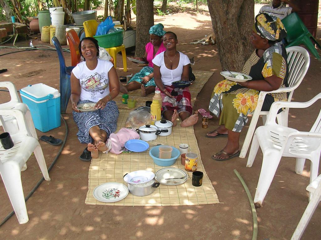 Here are some of the family visits. They consist of greeting every one with the embrace and two cheeked pressing action as people might have seen from parts of Latino Europe. Then there is the sit down, usually the guests are proffered (and particularly me, as a mulungu) are offered seats. The setting is always outside under some sort of fruit tree, hopefully not a coconut palm, and there are always ‘steiras’, reed mats, spread on the ground.