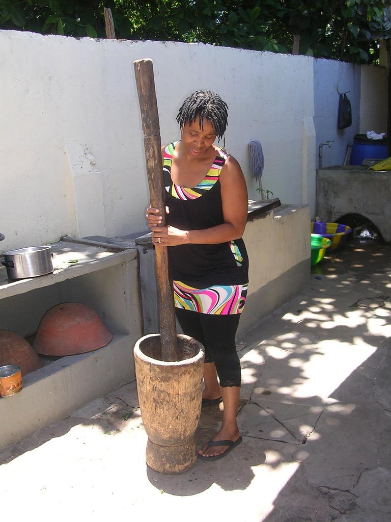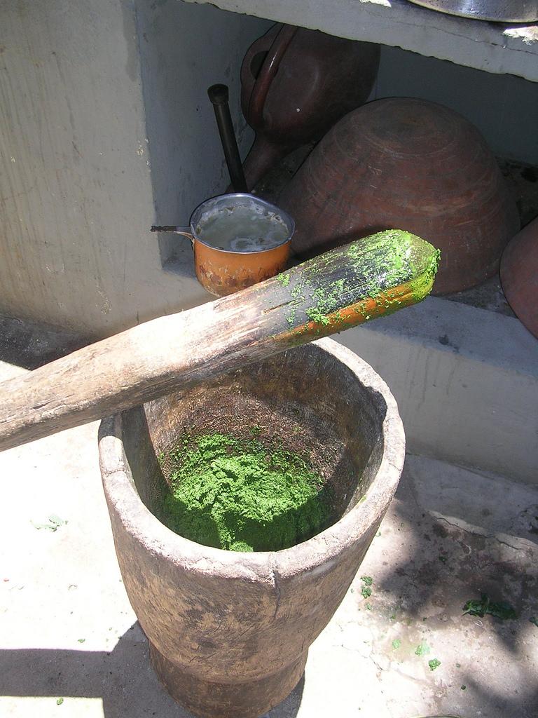 Every time I get back to Maputo my favourite local dish is made for me. It is the topmost leaves of the mandioca (cassava in English) that are crushed in the local mortar and pestle, known as the ‘pilhau’, this forms a green paste to which is then added coconut milk, and usually crab and prawns…absolutely delish: