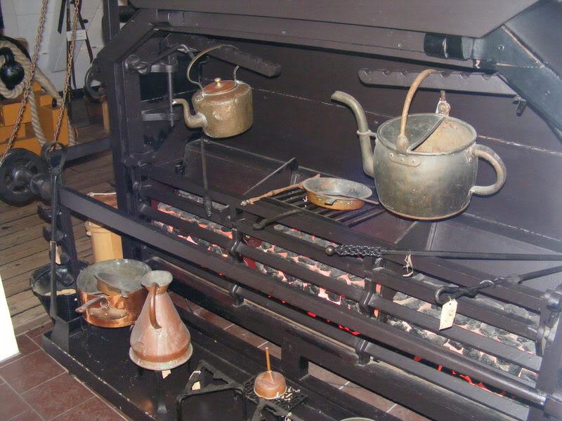 The gally, that provided all the tucker. Salted Meat twice a week, in a stew. Hard dry bickys and dayly rum rashon. Imagion carrying enough tucher for 800 blokes for 6 mounths.
