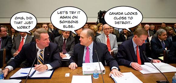 The result is the only car manufacturers with a secure future are the ones with the most reliable government support. The ones that need the least support are the ones with new factories that are more fully automated than the old ones in Detroit (e.g. China, Korea, possibly India), and the ones already tooled up for the designs that people will buy in a severe economic climate. The further problem that Detroit has, is a huge unfunded superannuation debt that they agreed to when business was booming.