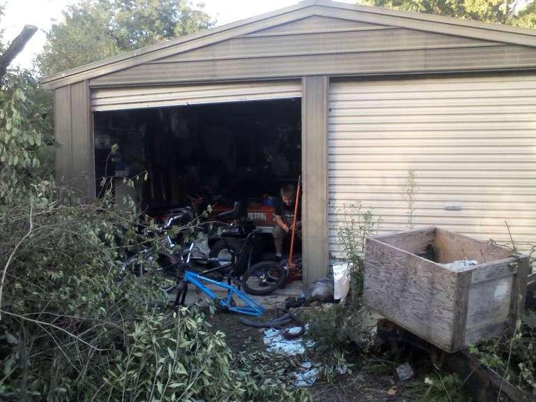 We have this 10 x 6 meter shed ( diffucult access, 2meter height on the rafters and full of cars) ... and the ugly brown POS that leaks like a sieve and was built out of already stuffed 2nd hand materials 25years ago....