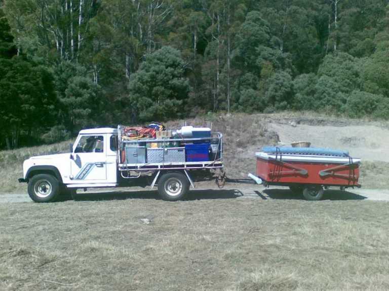 My new Defender towing my old Defender: