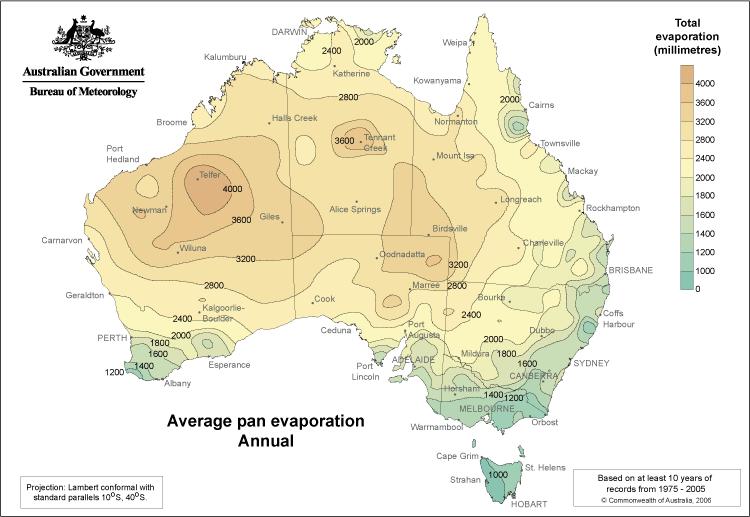 Ahhh, thats some interesting stuff there! Looking at the map it looks like almost all (perhaps with the exception of coastal areas) of Aus has higher evaporation rates in comparison to rainfall.