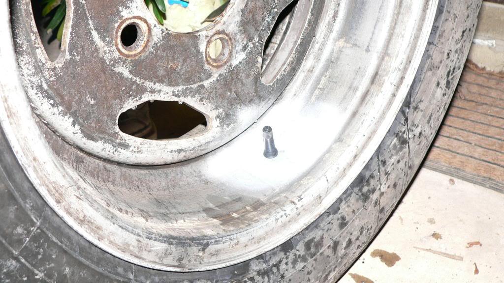 As you can see we welded up the old valve stem hole and drilled a new one.