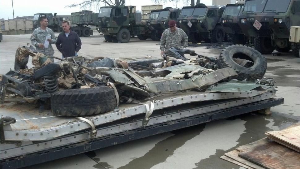 This is what happens to a HumVee when the parachute fails to deploy.....
