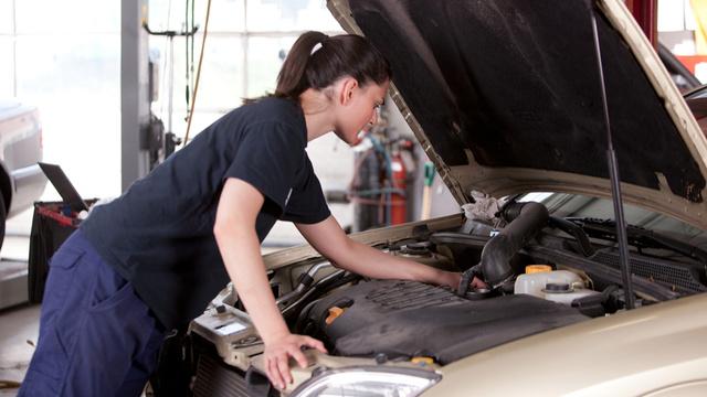 Inappropriate footwear for the job, she clearly doesn't look after her clothes, I don't know why you'd need a wrench that size, and she spends all time taking photos!