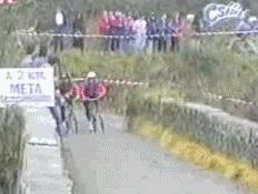 Just on the footage shown. Bike rider takes out other bike rider. Bloke standing near by is not happy with what he saw and takes matters into his own hands.