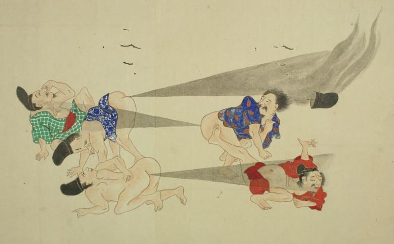 I sure hope those are melons, and not rocks, as there is a pink mist that can be seen once it hits her head. I had a friend that got hit in the eye with an onion from something similar when I was a teenager.