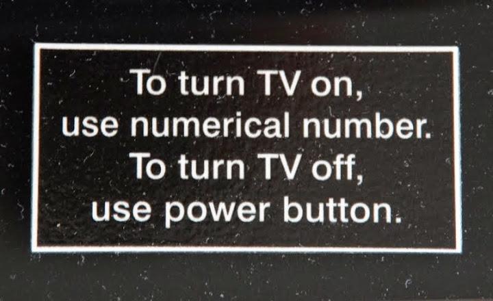 A label on the TV in our room at the Sebel Harbourside Kiama where we stayed last night. Yes, I should have cleaned it before taking pic.
