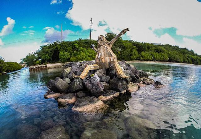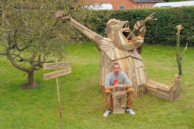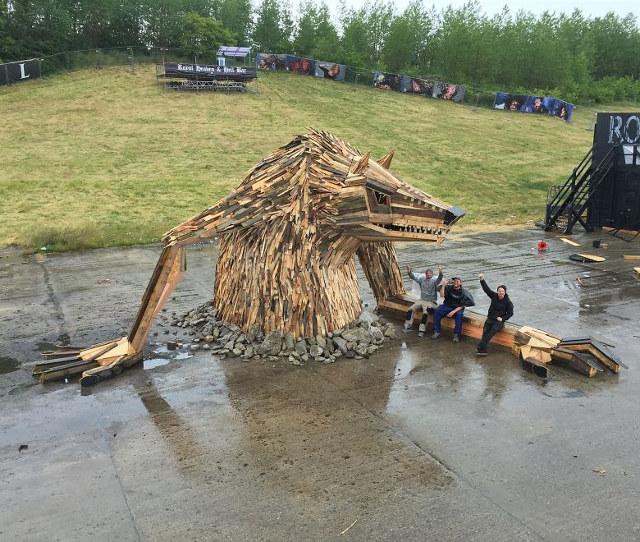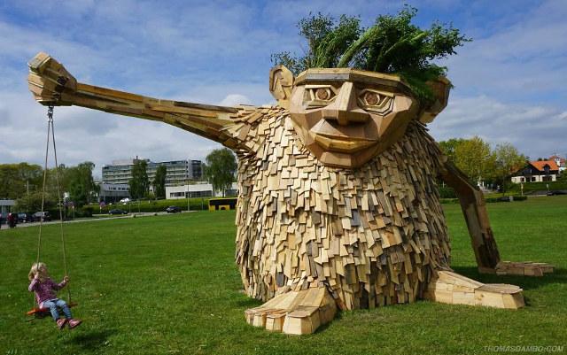 These are a bunch of scrap wood sculptures created by Danish artist Thomas Dambo.