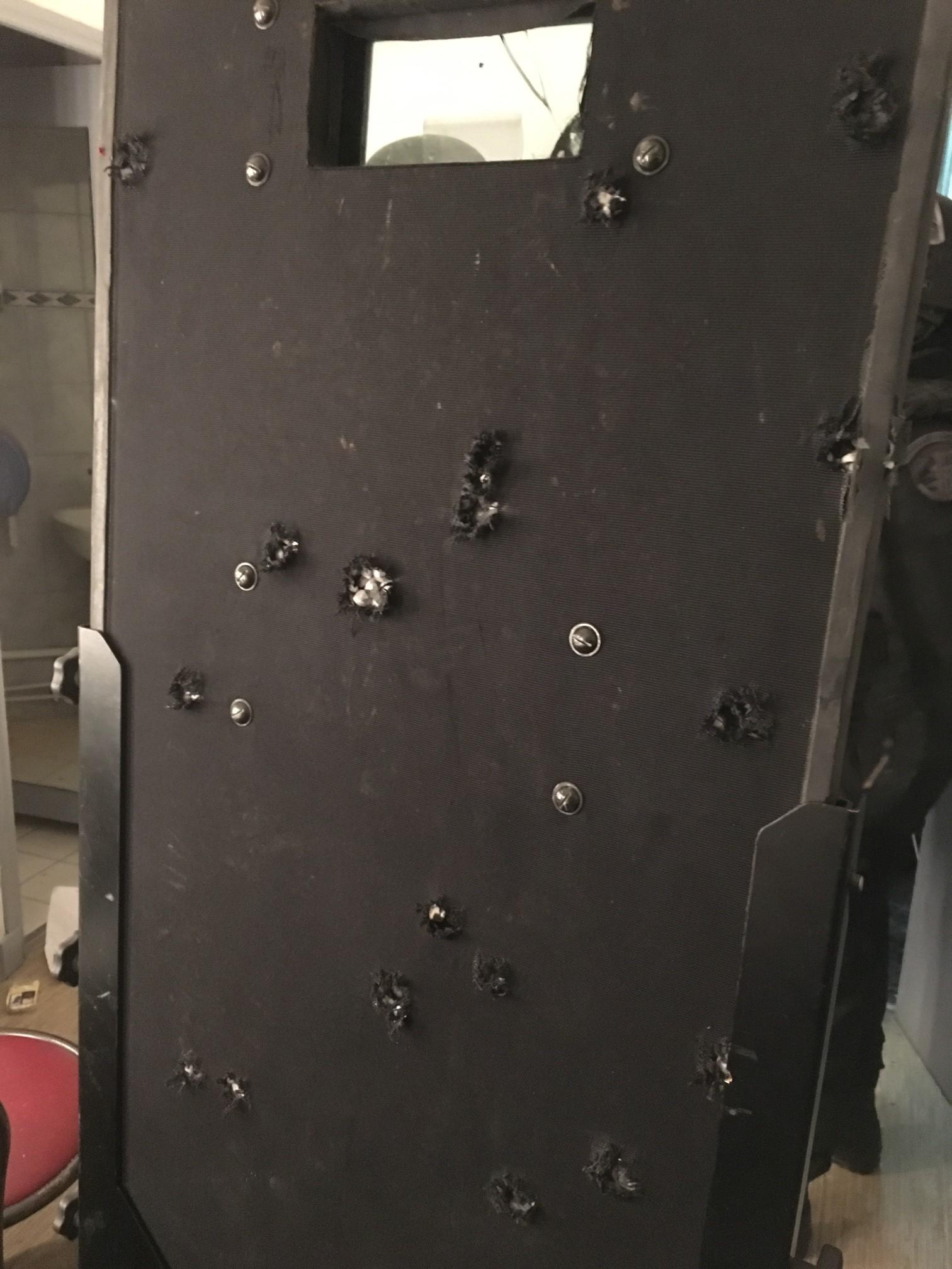 A shield used by French police who entered the Bataclan concert hall in Paris.