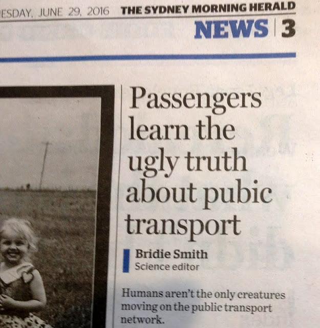 The Head Line may not be an error seeing as a lot of the microbiological life found on Public Transport was from the Pubic area!