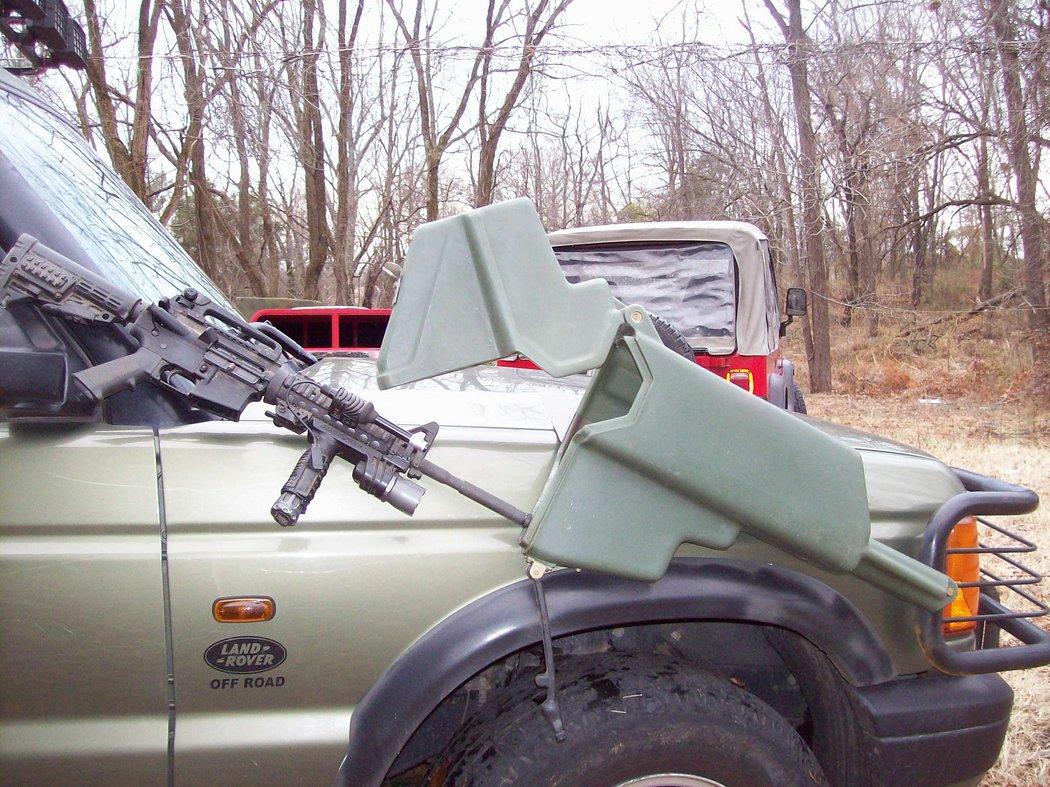 Its an airsoft gun, I've seen the photos on another forum. The fellow has done his Disco up to look like a safari vehicle from a jurassic park movie or somesuch.