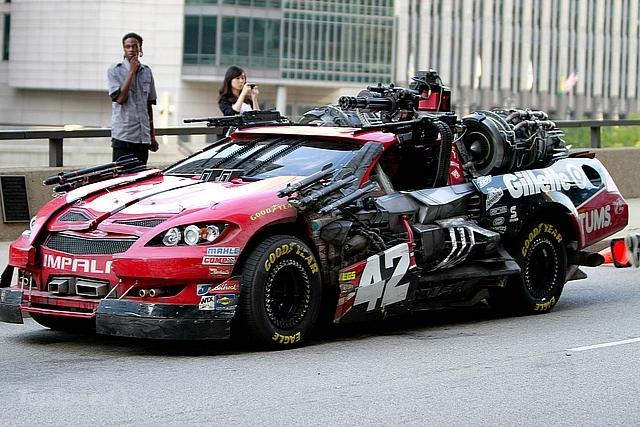 Heath Ledger skate boarding over Christian Bale while they take a break on set of TDKR