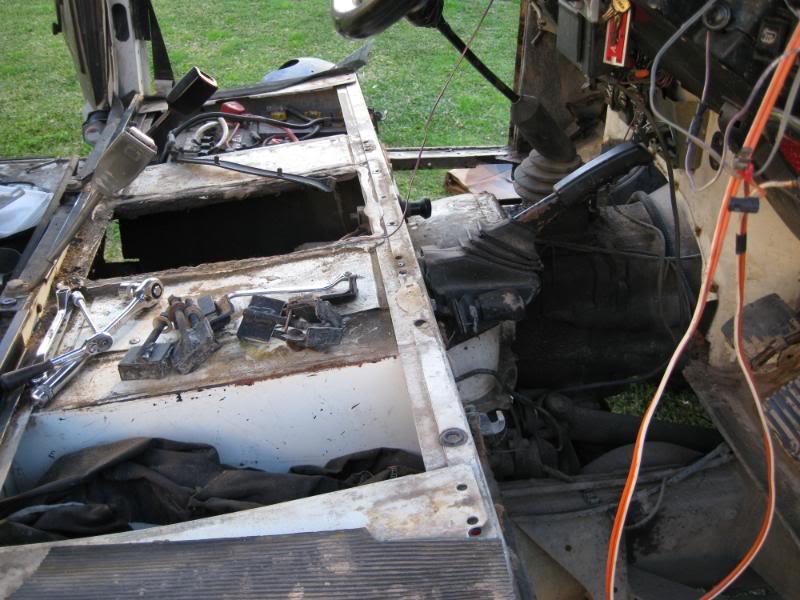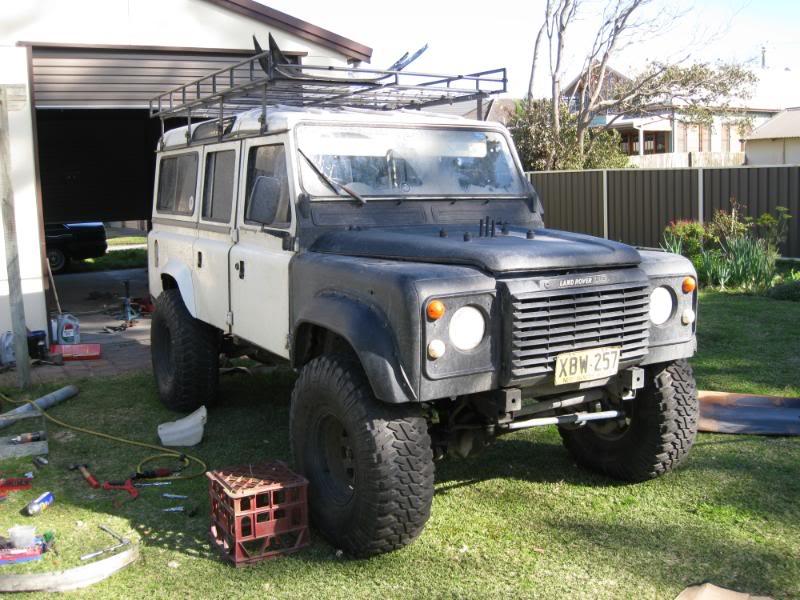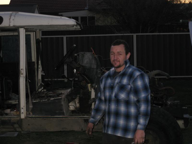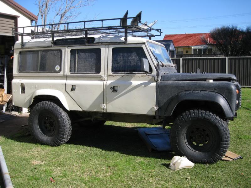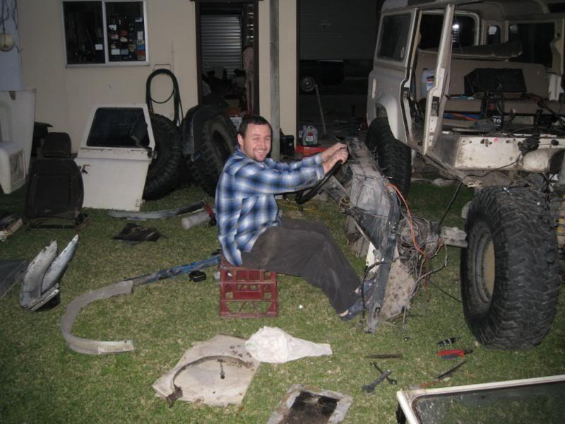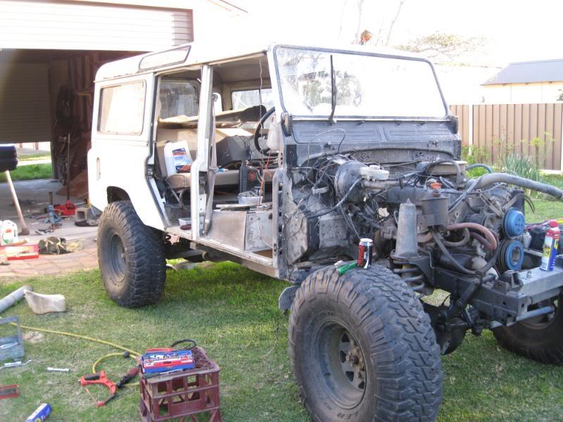 Then on the firewall, its a big job... I have removed all my A/C stuff previously, no heater box etc so i didnt have to worry about any of that, i pulled the all the plugs out at the firewall to chassis side of the wiring, also undone any cable ties etc holding wiring to the firewall that was attached to the chassis, then removed the brake lines from the bottom of the proportion valved(in a county its attached tot he firewall not sure about how a defenders brakes setup is) for the clutch, i removed the hose from the slave cyl to the firewall. With steering column i undone the splines and slipped out the shaft while we lifted the firewall off, i think a defender setup is different. I also removed the speed drive cable from the cluster and pulled it through and left it with the gearbox, removed various vacum lines for the booster and other things, removed all the lines to the carbon pot etc and throttle linkages. After we removed the windscreen, it was a bitch to get out, after undoing from the roof and removed the roof lining i thought we may have been able to fold it forward, but the rear view mirrow mount kept catching on the roof, we had to undo most of the roof and undo the hinges to get it out - if i did it again i would start with the roof then undo the hinges you might be able to get it out without removing the roof, just the b pillar roof mounts. the bottom of the firewall is held with 2 large bolts on the outsides, there are also 2 bolts that hold the side rails on to the firewall, then there are 2 firewall to chassis mounts, on mine they had 2 bolts with a flat blade screw head on the floor pan side, the bottom one is visable but the top one was covered by the cardboard trim pieces at the top of the foot well. Once these were out we just lifted it out, a hoist and sling would have been a better option !